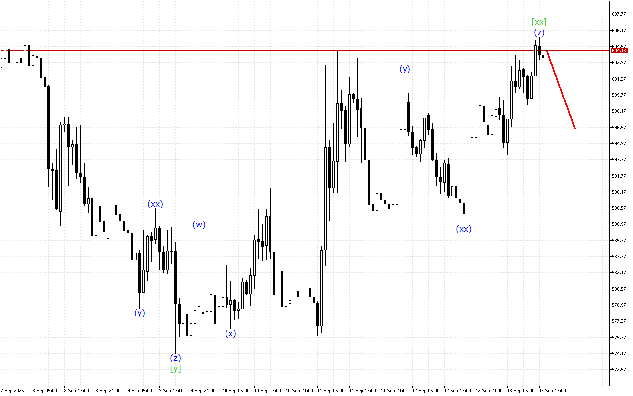 Daha yüksək zaman çərçivəsində üçlü üç dalğa strukturunun inkişafı var. Hazırda [xx] dalğası formalaşıb. Bundan sonra qiymət aşağıya doğru hərəkətini davam etdirməlidir.