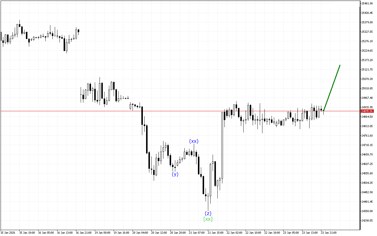 Daha yüksək zaman çərçivəsində üçlü üç dalğa strukturunun inkişafı var. Hazırda [xx] dalğası formalaşıb. Bundan sonra qiymət aşağıya doğru hərəkətini davam etdirməlidir.
