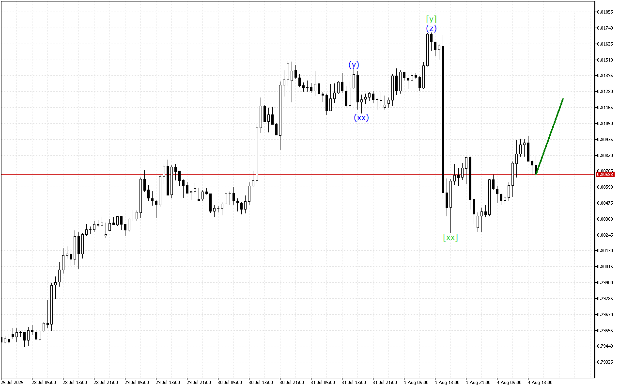 Daha aşağı zaman çərçivəsinin dalğaları üçlü üçlük yaradır. Qiymət hazırda (z) dalğasındadır. Bu dalğa tamamlandıqda, daha istiqamətli qiymət hərəkəti gözlənilir.