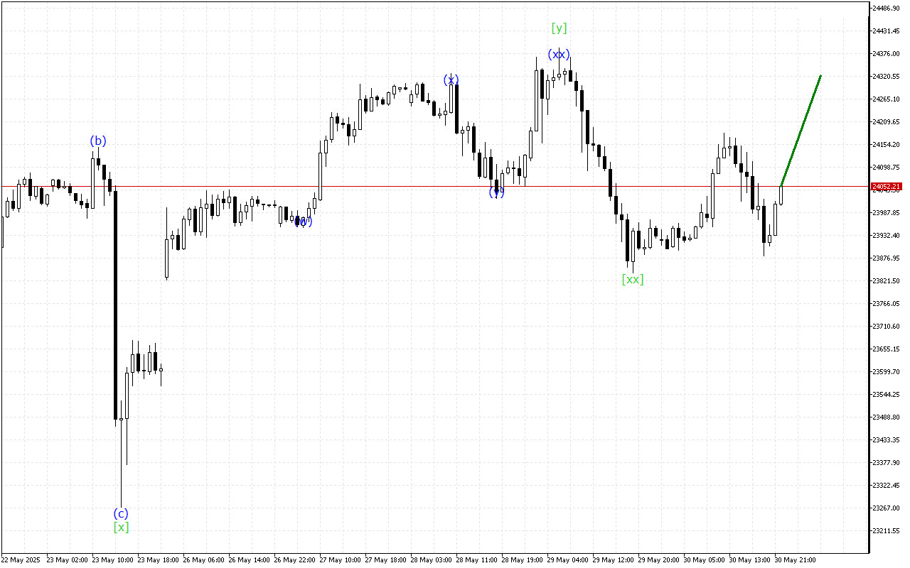 Daha yüksək dərəcəli dalğa strukturunun təhlili düşən pazı göstərir. Bu beşdalğalı formalaşma çərçivəsində [iv] dalğasının formalaşması başa çatır və [v] dalğası daxilində aşağıya doğru hərəkətin bərpası gözlənilir.