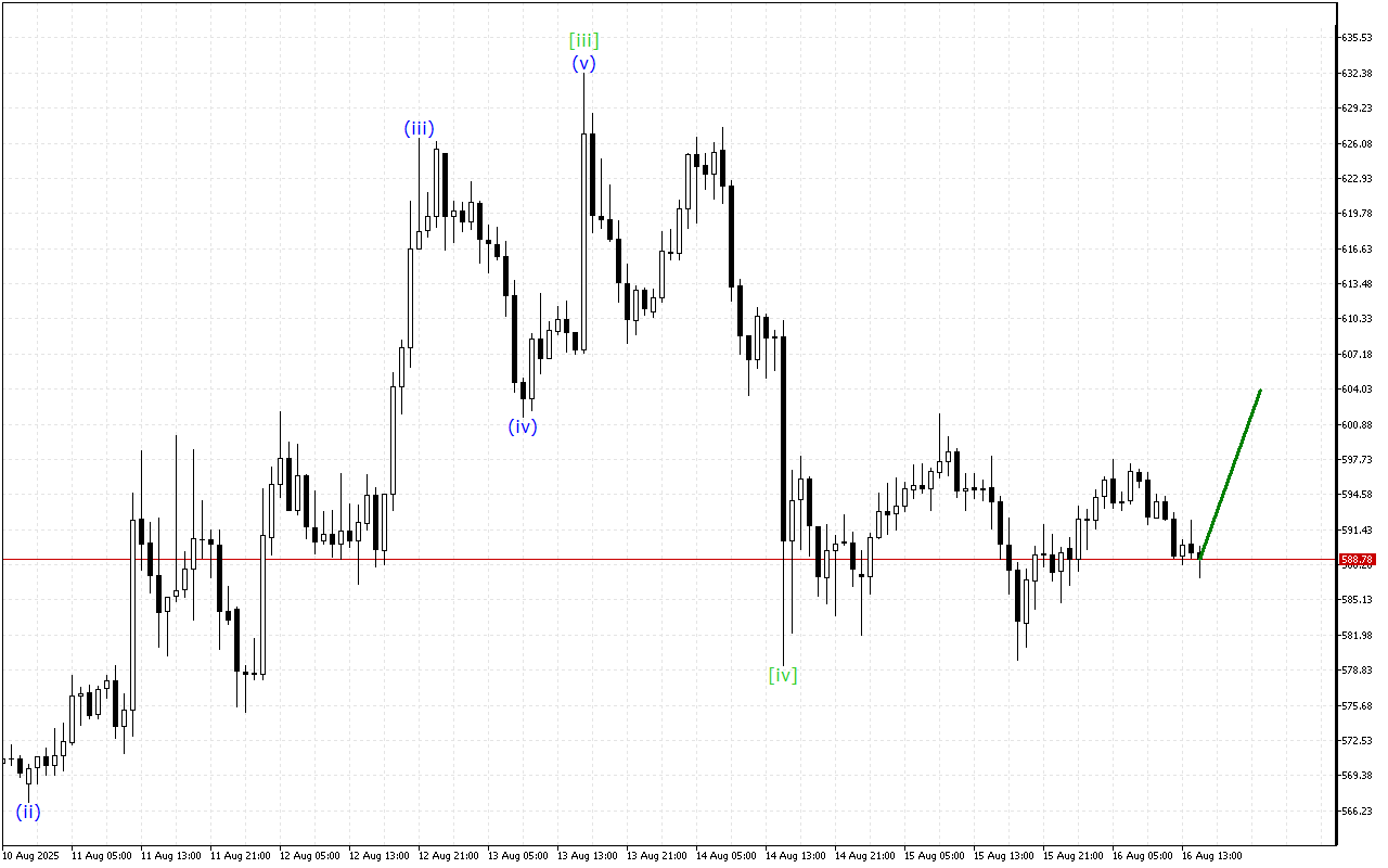 Daha kiçik bir zaman çərçivəsinə görə, bazar ABC ziqzaqında hərəkət edir. Hazırda qiymət (c) dalğasının formalaşmasını tamamlayır və qiymət hərəkəti yeni dalğa formalaşmasına keçə bilər.