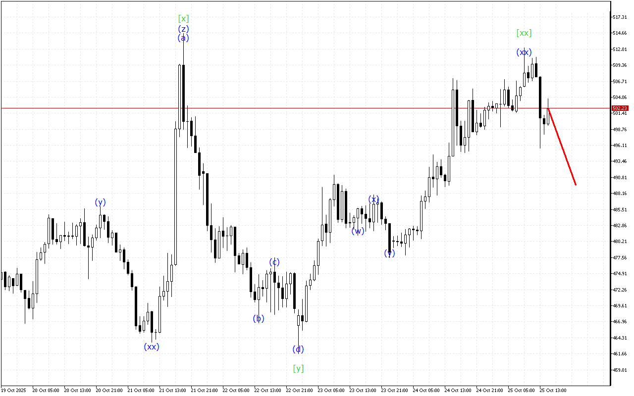 Aşağı dərəcəli dalğalar aşağıya doğru ABC ziqzaqının formalaşmasını göstərir. Dalğa (c) artıq tamamlanmalıdır, ona görə də yeni dalğa strukturunun formalaşmasını gözləmək olar.