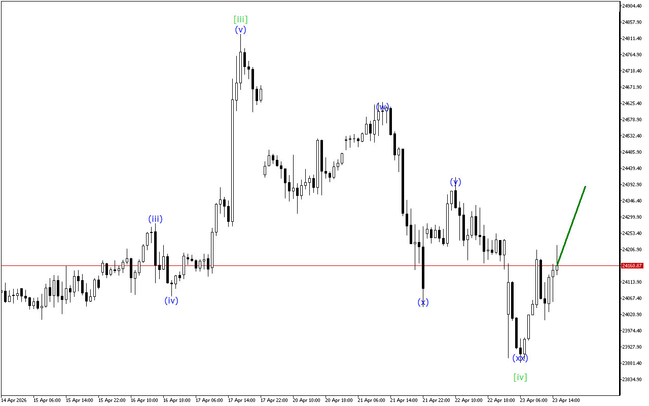 Aşağı dərəcəli dalğa quruluşunda üçlü üçlüyün formalaşması qeyd olunur. İndi qiymət bu formalaşmanı tamamlayan (z) dalğasındadır. Bu dalğanın yaxın vaxtlarda sona çatacağı gözlənilir. Bundan sonra cari qiymət trendi dəyişə bilər.