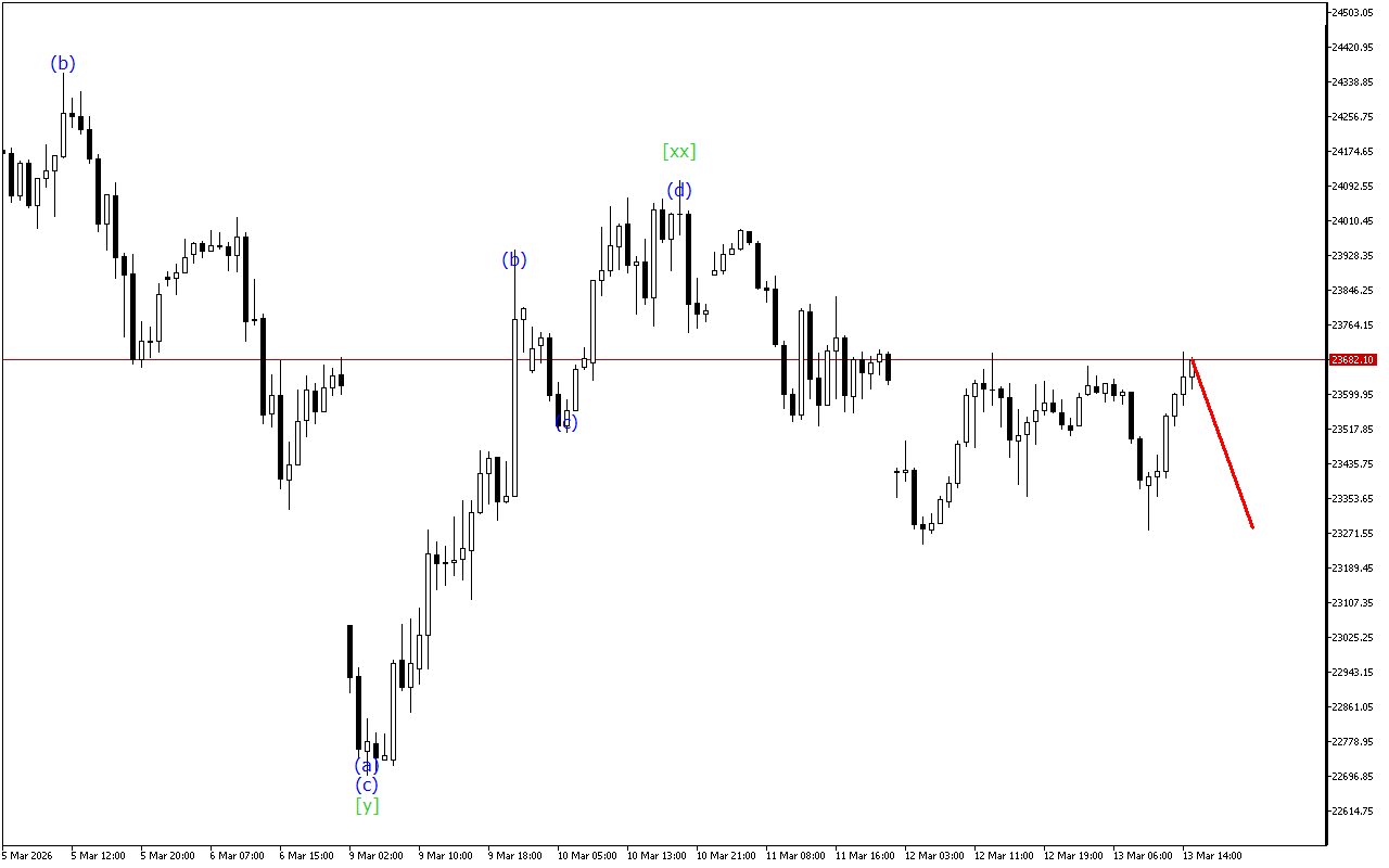 DAX 40 H1: 13.3.2026 의 미국 세션을 위한 파동 분석