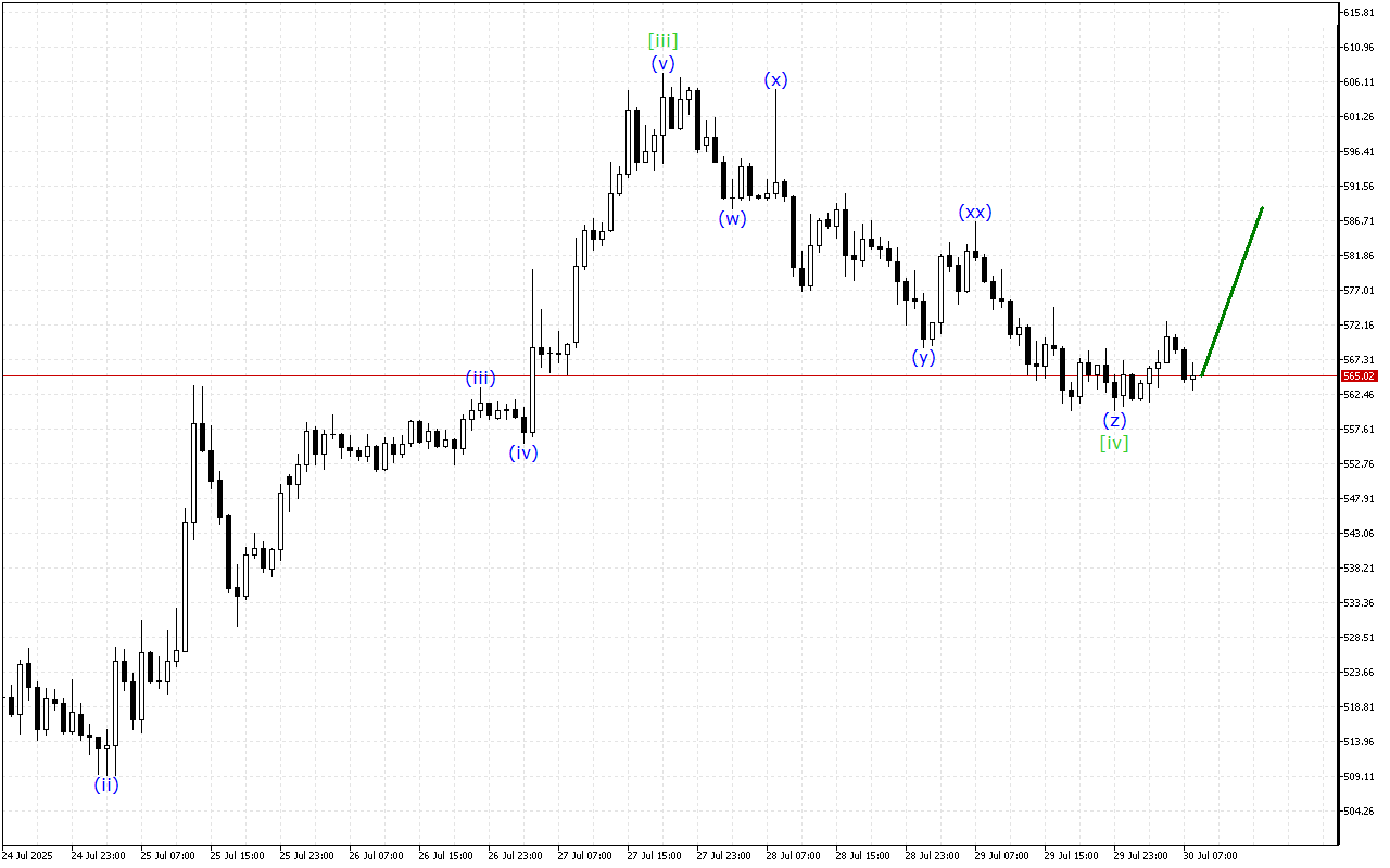 DAX 40는 계속해서 Triple Three 파동 구조 내에서 움직이고 있습니다. 이제 분명히 파동 [xx]의 형성이 차트에서 완료되었고 파동 [z]와 함께 상향 움직임의 발전이 예상됩니다.