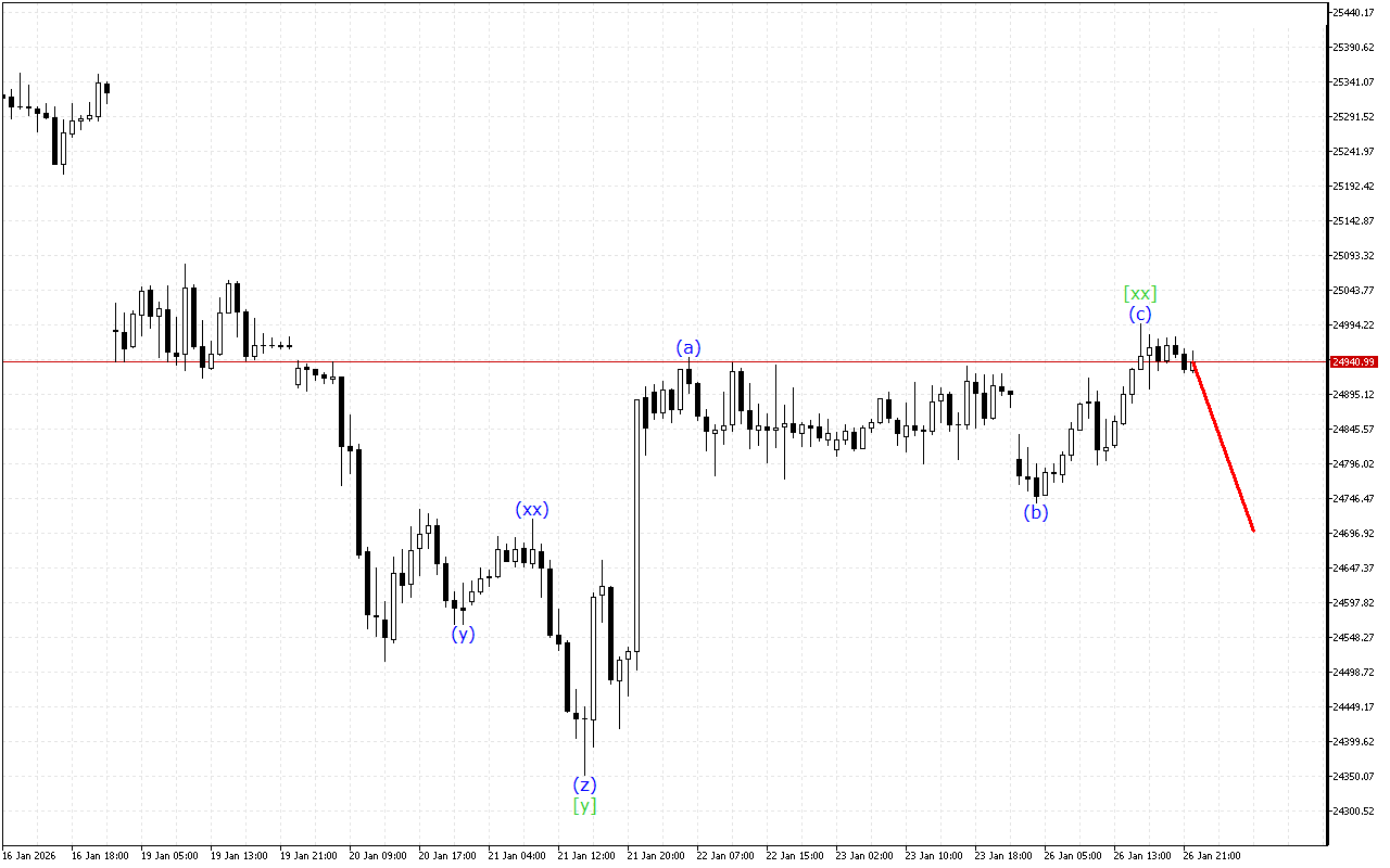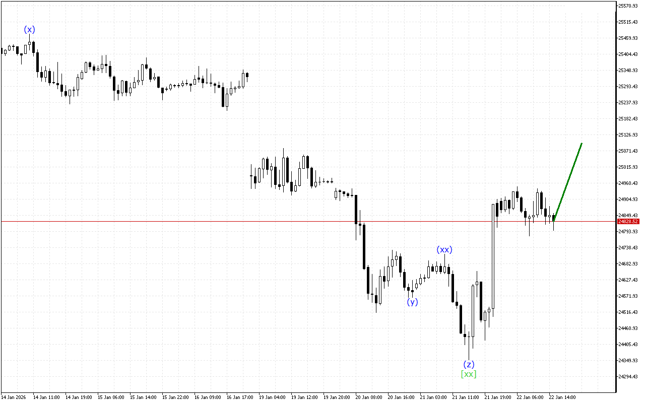 Έτσι, μια ανοδική κίνηση συνεχίζει να σχηματίζεται στο γράφημα DAX 40, αλλά αυτή η ώθηση βρίσκεται στο τελικό στάδιο σχηματισμού, οπότε η τιμή μπορεί να συνεχίσει μια πτωτική κίνηση.