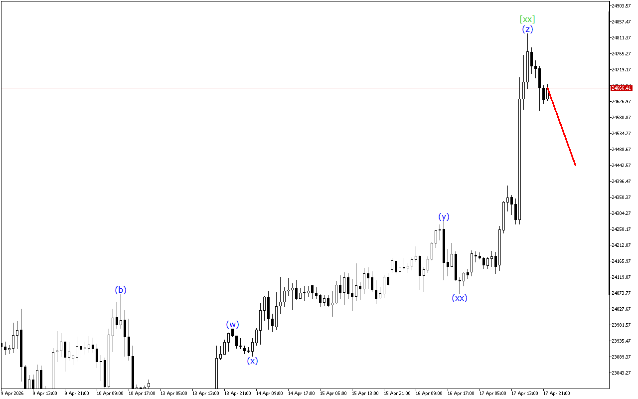 Μέσα σε μια κυματική δομή χαμηλότερου βαθμού, σημειώνεται η ανάπτυξη ενός τριπλού τριαριών. Ο σχηματισμός του κύματος (z) ολοκληρώνεται σε αυτή τη δομή. Σε αυτό το φόντο αναμένεται η ολοκλήρωση της διόρθωσης και η έναρξη μιας πιο κατευθυντικής κίνησης.