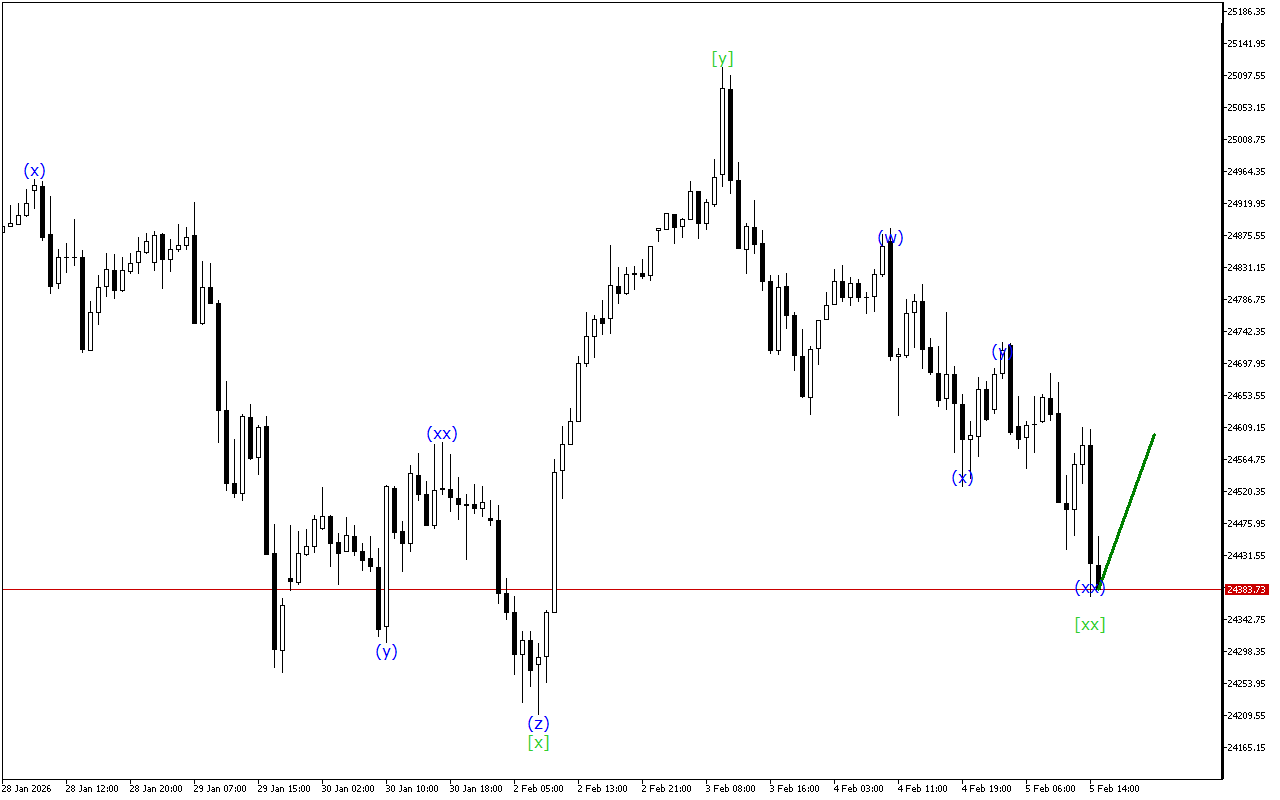 Το DAX 40 συνεχίζει να κινείται εντός της κυματικής δομής Triple Three. Τώρα, προφανώς, ο σχηματισμός του κύματος [xx] έχει ολοκληρωθεί στο γράφημα και η ανάπτυξη μιας ανοδικής κίνησης μπορεί να αναμένεται με το κύμα [z].