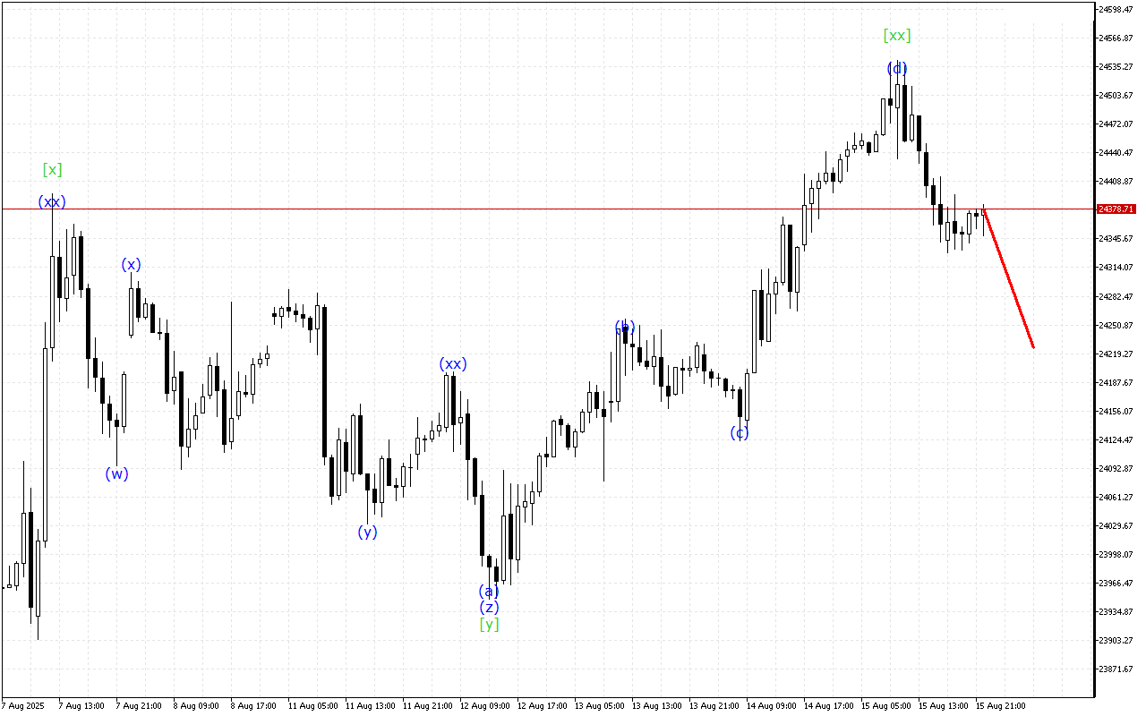 Σύμφωνα με μια μικρότερη χρονική κλίμακα, η αγορά κινείται εντός του ζιγκ-ζαγκ ABC. Επί του παρόντος, η τιμή είναι πιθανό να ολοκληρώσει το σχηματισμό του κύματος (γ) και η κίνηση της τιμής μπορεί να μετακινηθεί σε ένα νέο σχηματισμό κύματος.