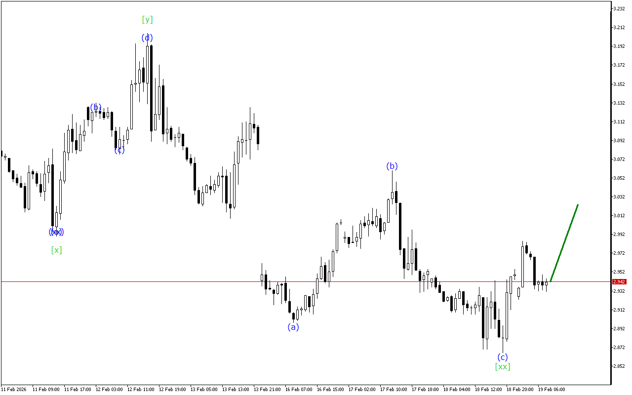 Το Natural Gas συνεχίζει να κινείται εντός της κυματικής δομής Triple Three. Τώρα, προφανώς, ο σχηματισμός του κύματος [xx] έχει ολοκληρωθεί στο γράφημα και η ανάπτυξη μιας ανοδικής κίνησης μπορεί να αναμένεται με το κύμα [z].