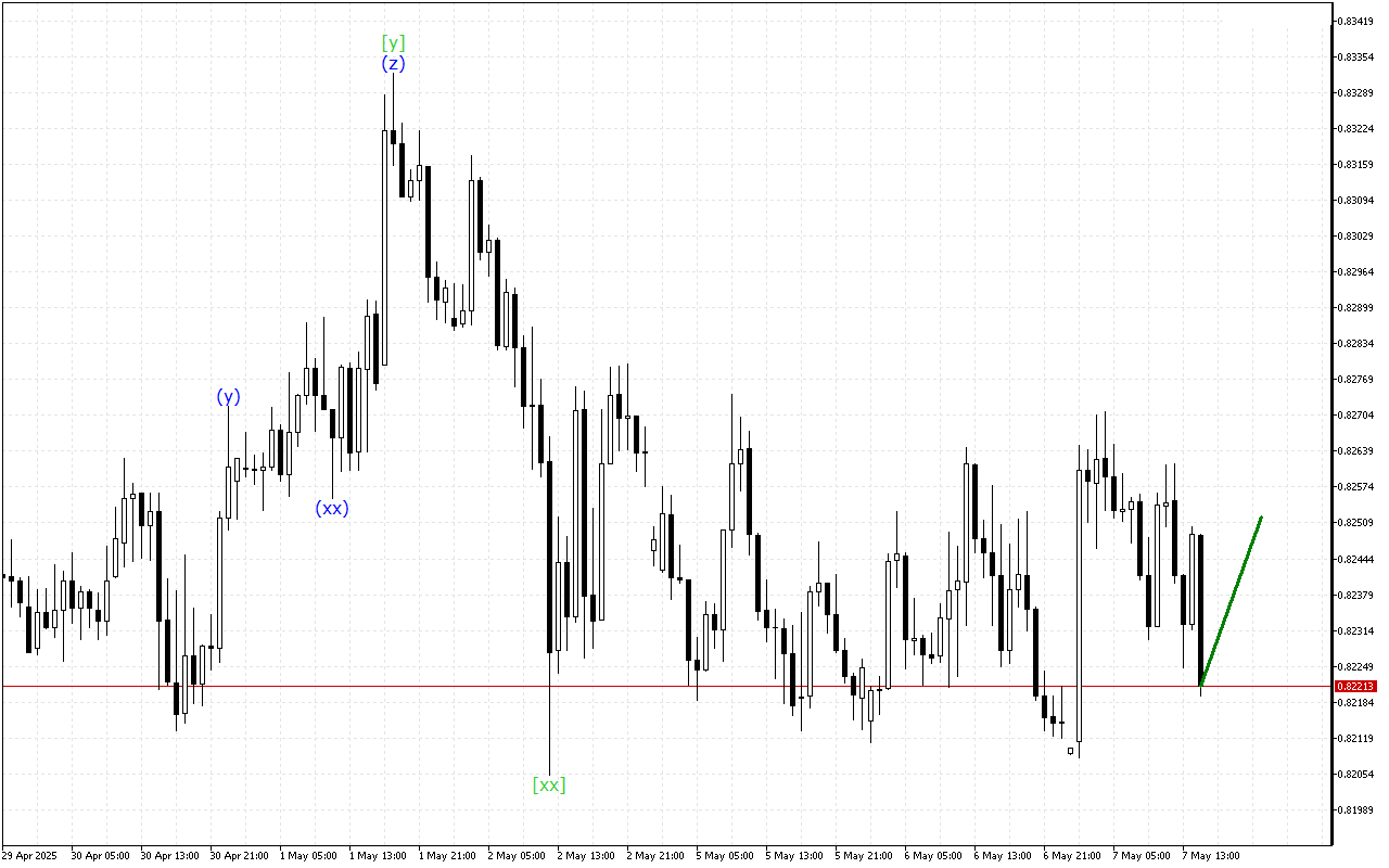 Σε μια κυματική δομή χαμηλότερου βαθμού, σημειώνεται ο σχηματισμός τριπλού τριαριών. Τώρα η τιμή βρίσκεται στο κύμα (z), που ολοκληρώνει τον σχηματισμό. Αυτό το κύμα αναμένεται να τελειώσει στο άμεσο μέλλον. Μετά από αυτό, η τρέχουσα τάση των τιμών μπορεί να αλλάξει.