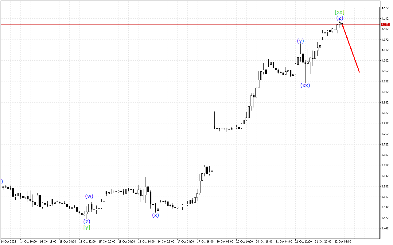 Μέσα σε μια κυματική δομή χαμηλότερου βαθμού, σημειώνεται η ανάπτυξη ενός τριπλού τριαριών. Ο σχηματισμός του κύματος (z) ολοκληρώνεται σε αυτή τη δομή. Σε αυτό το φόντο αναμένεται η ολοκλήρωση της διόρθωσης και η έναρξη μιας πιο κατευθυντικής κίνησης.