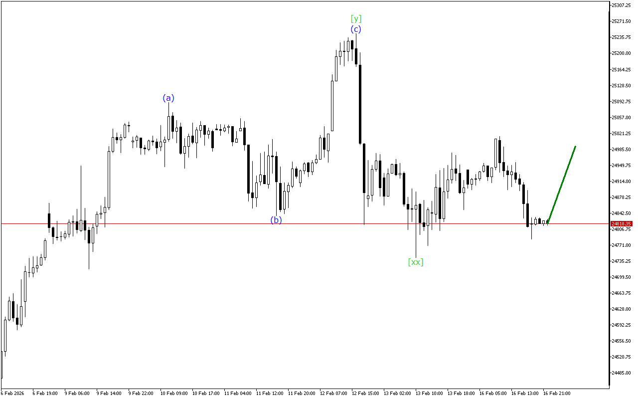 Σύμφωνα με μια μικρότερη χρονική κλίμακα, η αγορά κινείται εντός του ζιγκ-ζαγκ ABC. Επί του παρόντος, η τιμή είναι πιθανό να ολοκληρώσει το σχηματισμό του κύματος (γ) και η κίνηση της τιμής μπορεί να μετακινηθεί σε ένα νέο σχηματισμό κύματος.