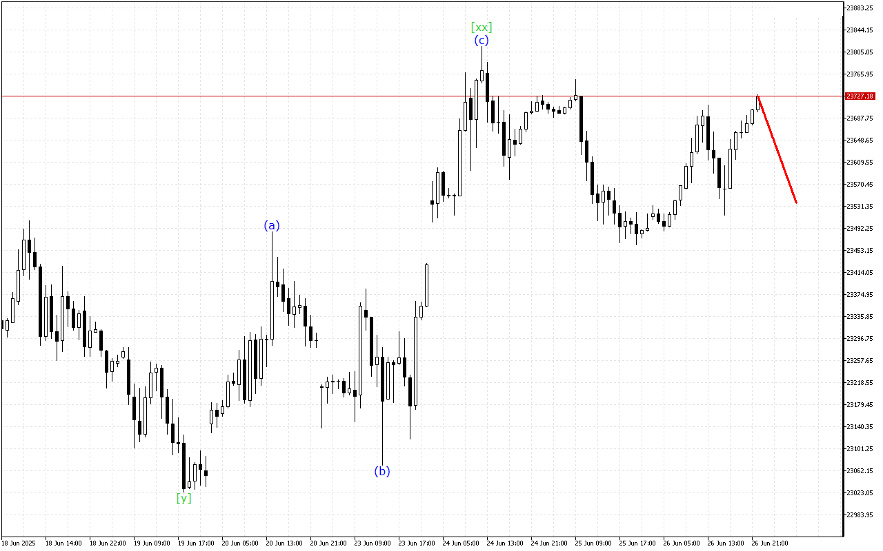 Σύμφωνα με μια μικρότερη χρονική κλίμακα, η αγορά κινείται εντός του ζιγκ-ζαγκ ABC. Επί του παρόντος, η τιμή είναι πιθανό να ολοκληρώσει το σχηματισμό του κύματος (γ) και η κίνηση της τιμής μπορεί να μετακινηθεί σε ένα νέο σχηματισμό κύματος.