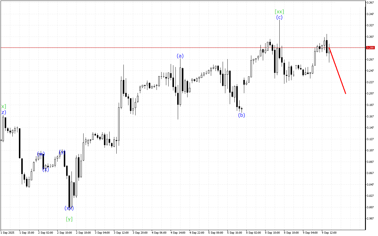 Μέσα σε μια κυματική δομή χαμηλότερου βαθμού, σημειώνεται η ανάπτυξη ενός τριπλού τριαριών. Ο σχηματισμός του κύματος (z) ολοκληρώνεται σε αυτή τη δομή. Σε αυτό το φόντο αναμένεται η ολοκλήρωση της διόρθωσης και η έναρξη μιας πιο κατευθυντικής κίνησης.