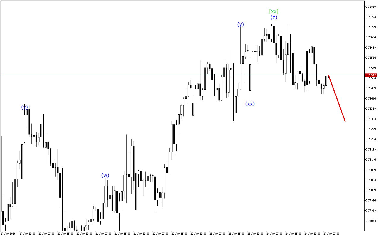 Lower-degree waves indicate the formation of a downward ABC zigzag. The wave (c) must have already been completed, so the formation of a new wave structure can be expected.
