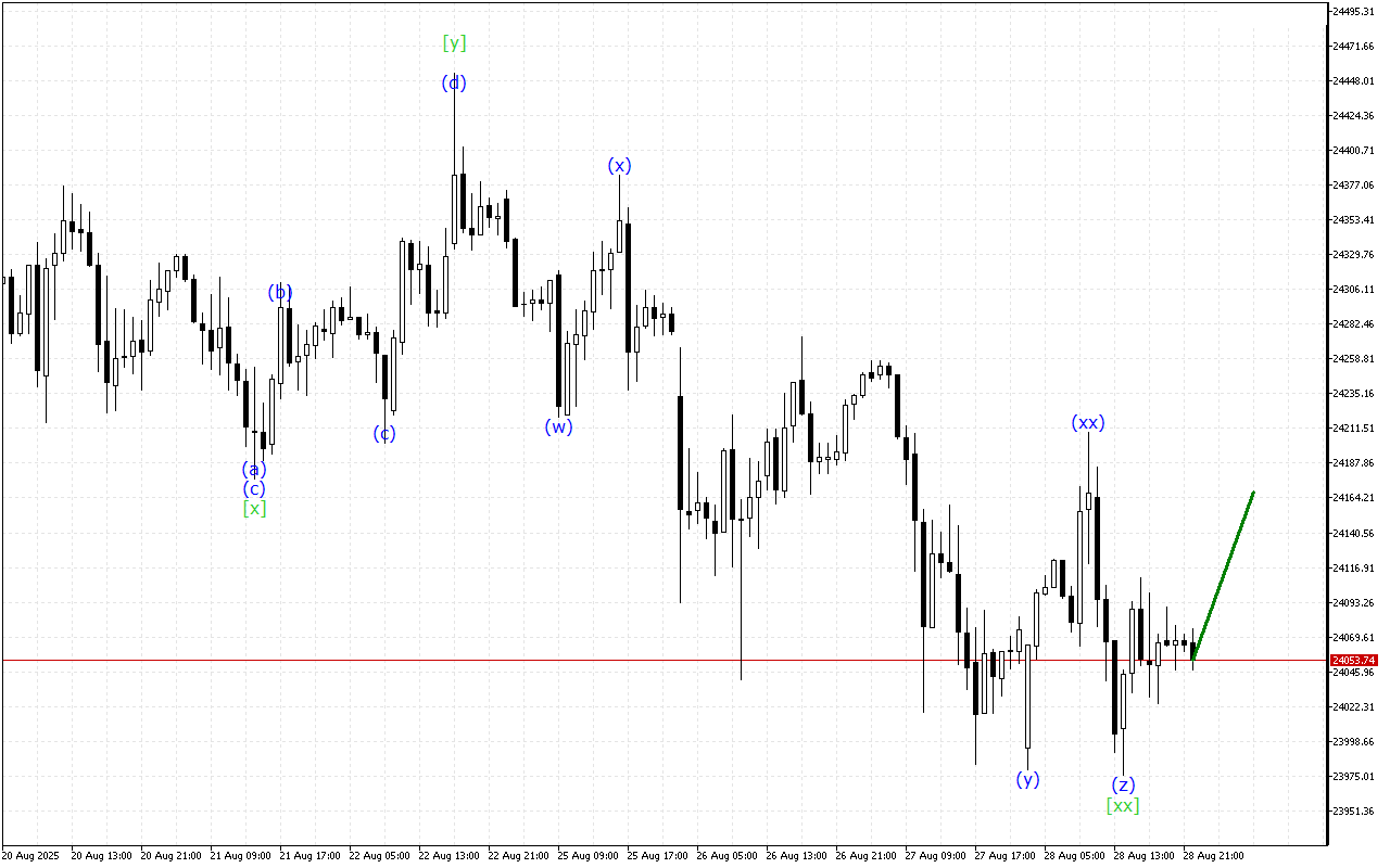 DAX 40 H1: Wave Analysis for the Asian Session on 29.8.2025