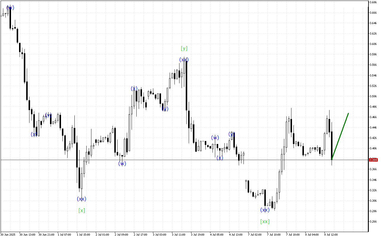 An analysis of the higher wave structure shows the formation of a WXY double three, with the development of the final wave [y]. After this, the development of a more directional price movement or the formation of a more complex five-wave structure can be expected.