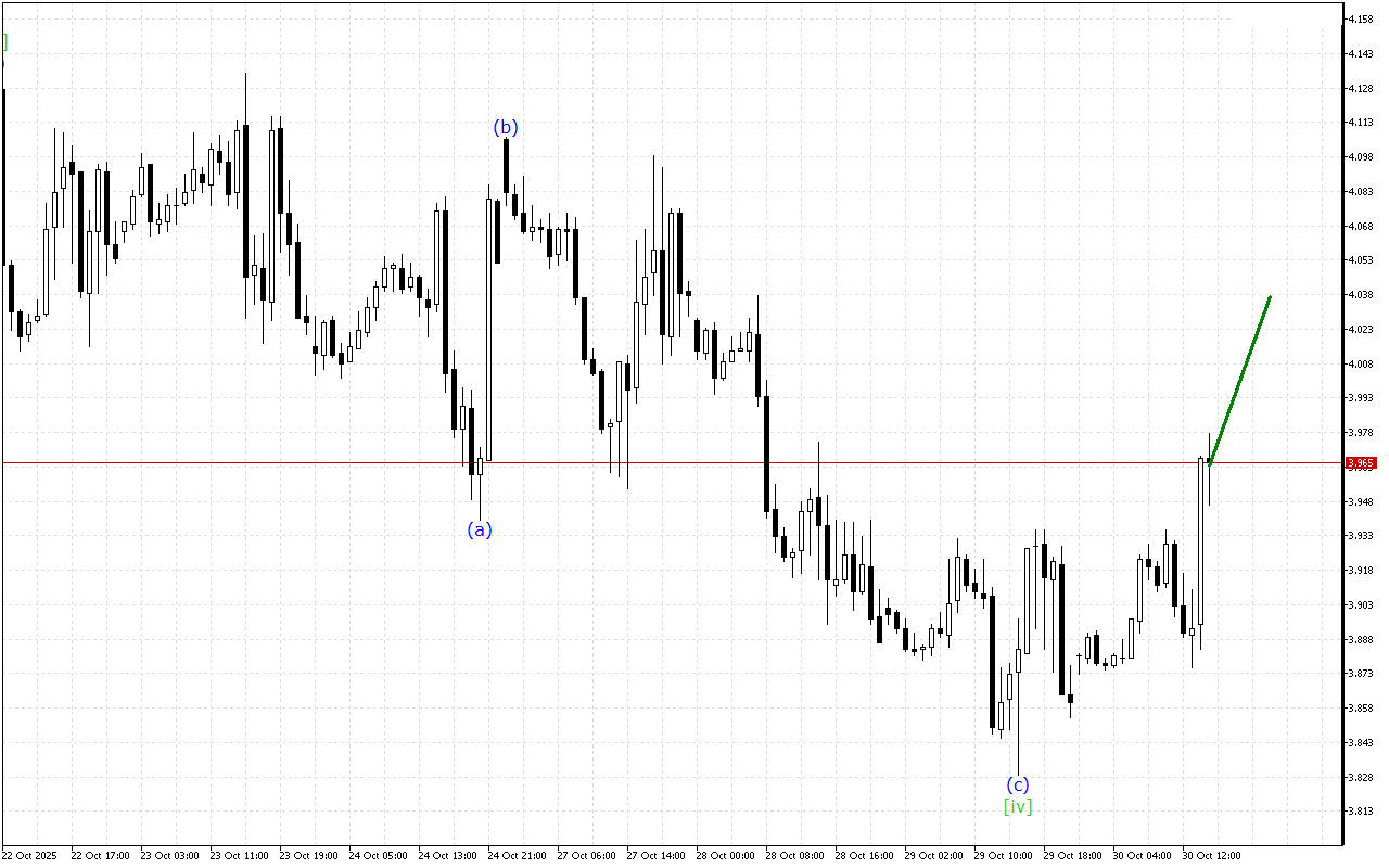 To summarize, at the moment the DAX 40 chart is maintaining a downward movement vector. However, the corrective wave is in the final stage of formation.