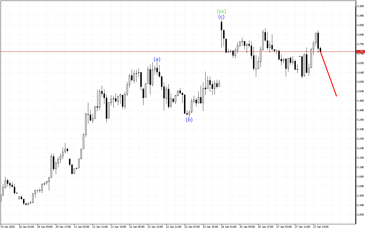 Natural Gas H1: Wave Analysis for the Asian Session on 28.1.2026