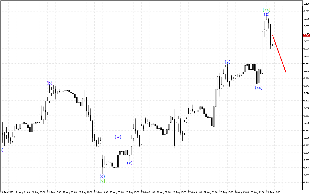 Natural Gas H1: Wave Analysis for the Asian Session on 29.8.2025