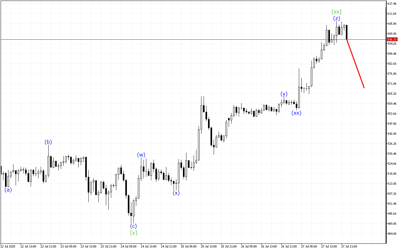 At a lower degree of the wave structure, the development of a triple three, where the formation of wave (z) has completed, is seen.