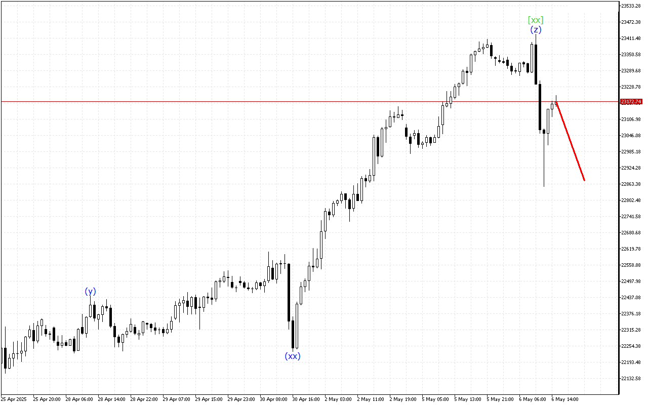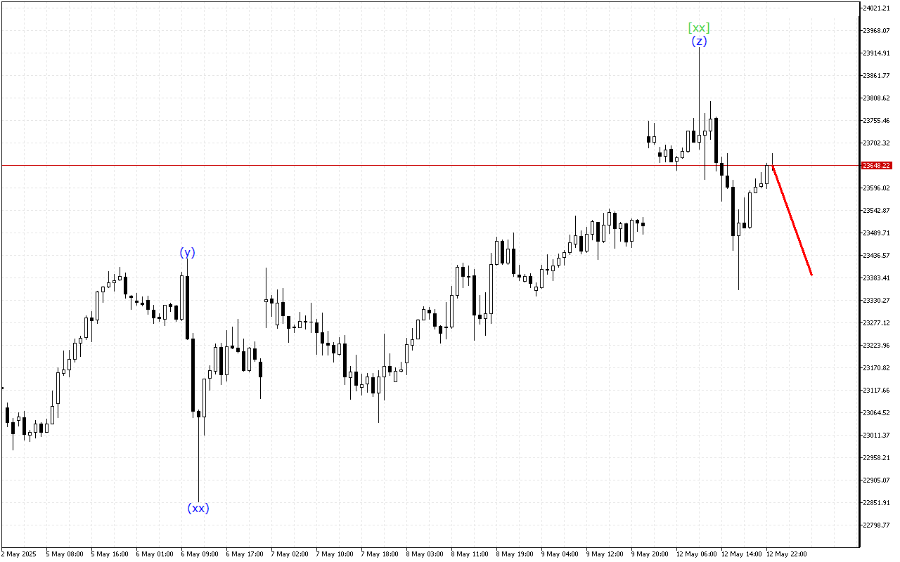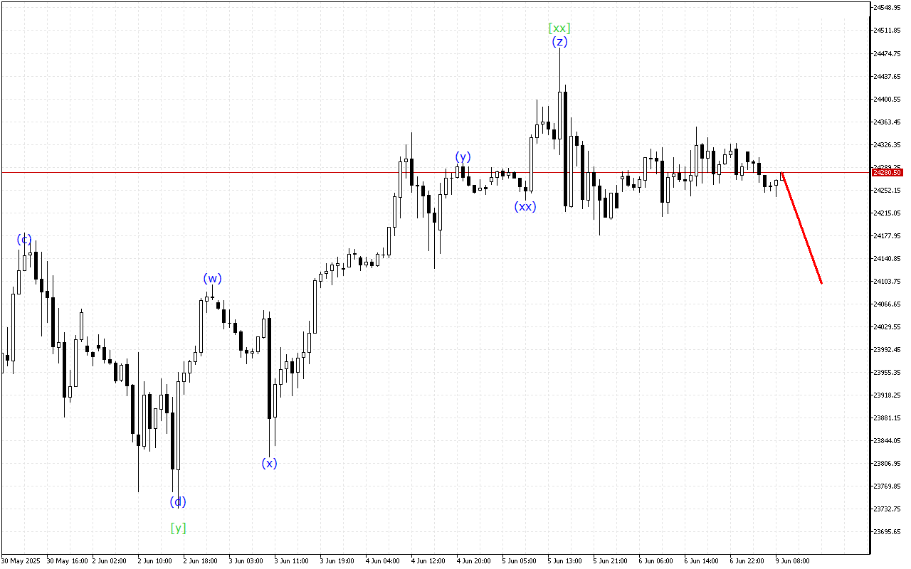 The analysis of the higher degree wave structure shows a falling wedge. Within this five-wave formation, the formation of the wave [iv] is completed and the resumption of downward movement within the wave [v] is expected.