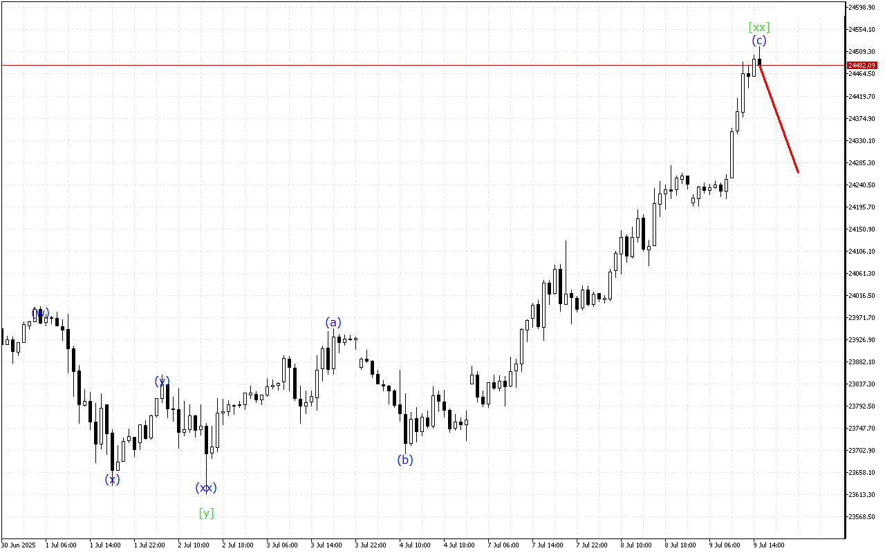There is the development of a triple three wave structure on a higher time-frame. Currently, the wave [xx] has been formed. After this the price should resume its downward movement.