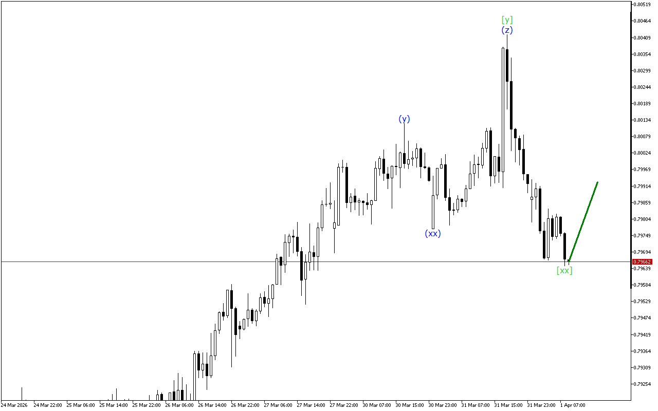 USDCHF H1: Wave Analysis for the European Session on 1.4.2026