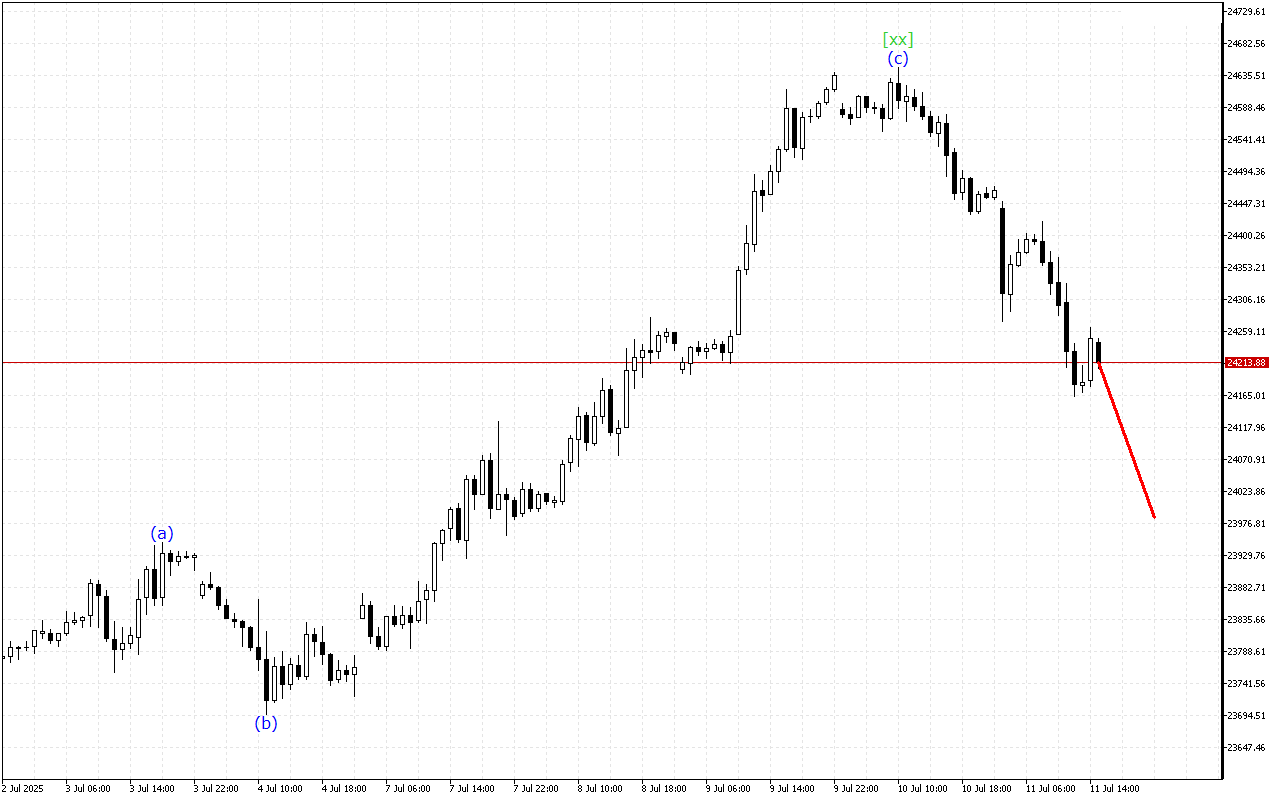 ქვედა ხარისხის ტალღის სტრუქტურის მიხედვით, DAX 40 ახლა მოძრაობს ABC ზიგზაგის ფარგლებში. ამ შემთხვევაში, ფასი სავარაუდოდ დაასრულებს ტალღის (c) ფორმირებას.