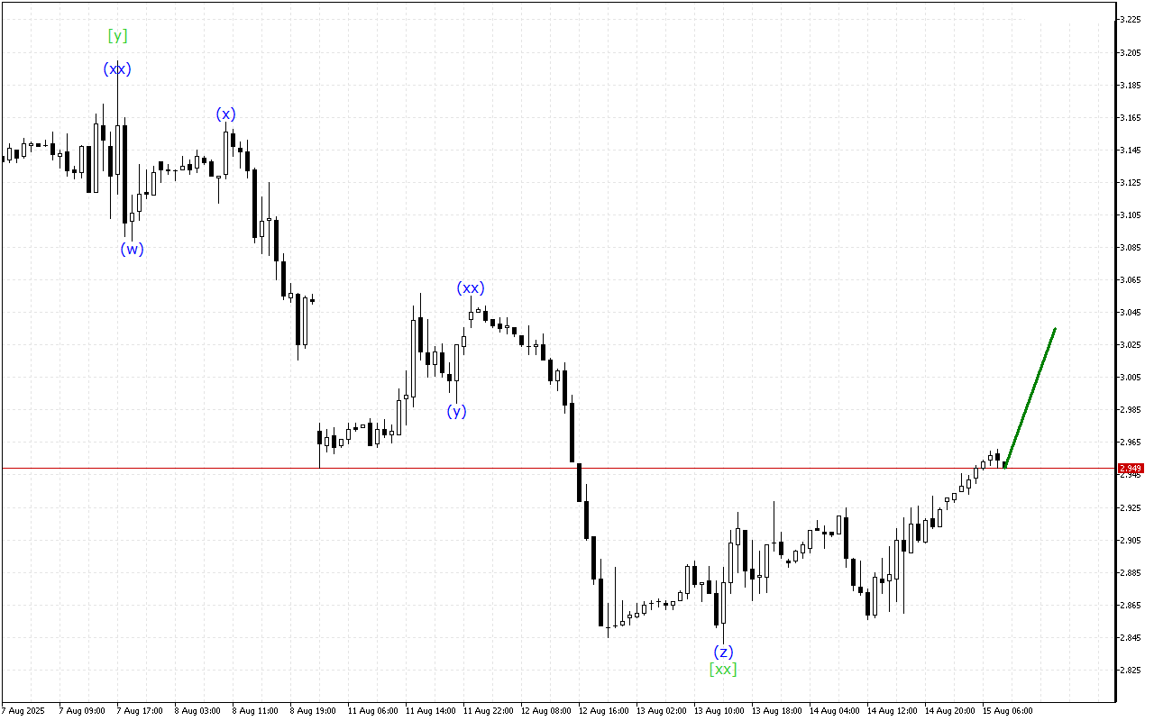 Natural Gas აგრძელებს მოძრაობას სამმაგი სამი ტალღის სტრუქტურის ფარგლებში. ახლა, როგორც ჩანს, გრაფიკზე [xx] ტალღის ფორმირება დასრულდა და აღმავალი მოძრაობის განვითარება შეიძლება მოსალოდნელი იყოს [z] ტალღით.