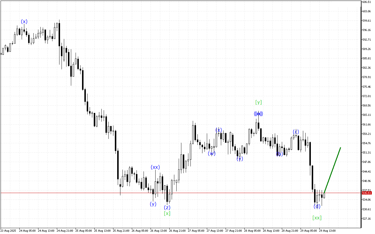 Кішігірім уақыт ауқымына сәйкес, нарық ABC ирек шеңберінде қозғалады. Қазіргі уақытта баға (c) толқынның қалыптасуын аяқтауы мүмкін және баға қозғалысы жаңа толқын қалыптасуына өтуі мүмкін.