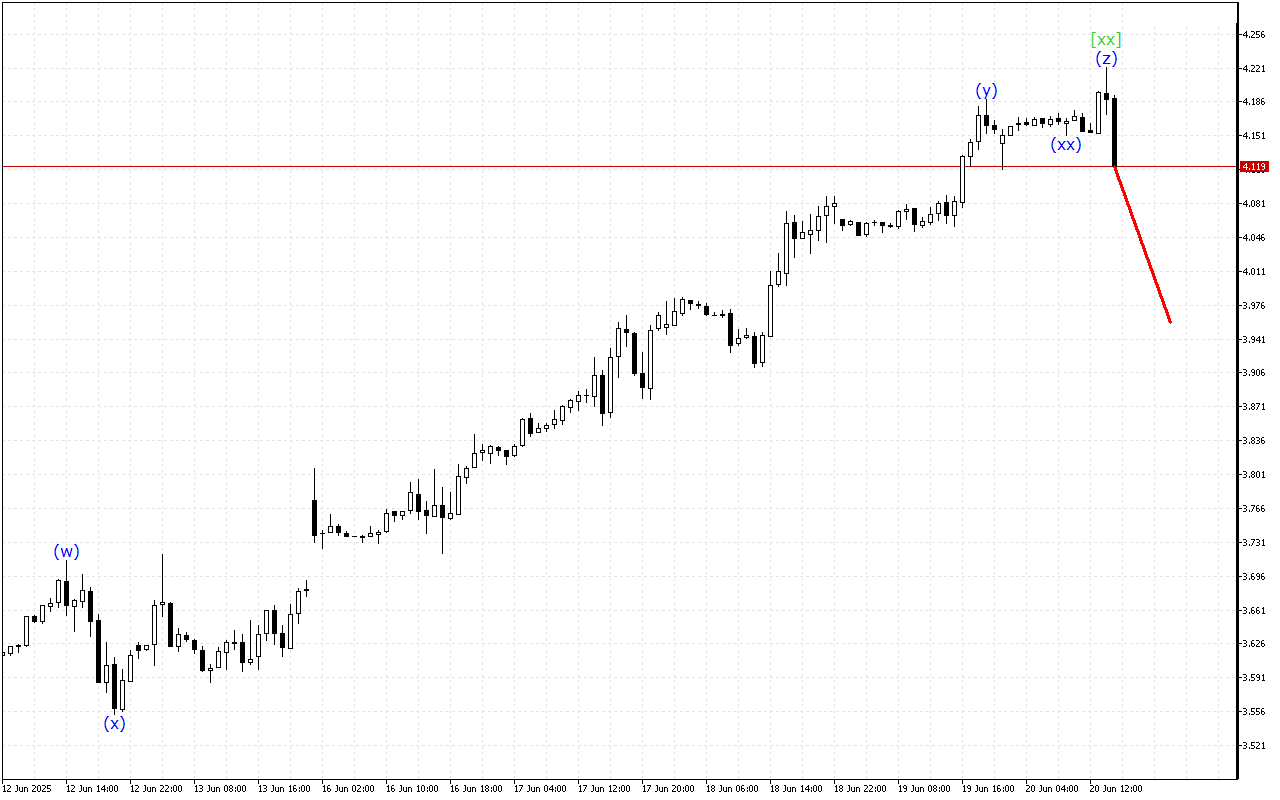 Төменгі дәрежелі толқындар төмен қарай ABC ирегі пайда болуын көрсетеді. (c) толқын әлдеқашан аяқталған болуы керек, сондықтан жаңа толқын құрылымының қалыптасуын күтуге болады.