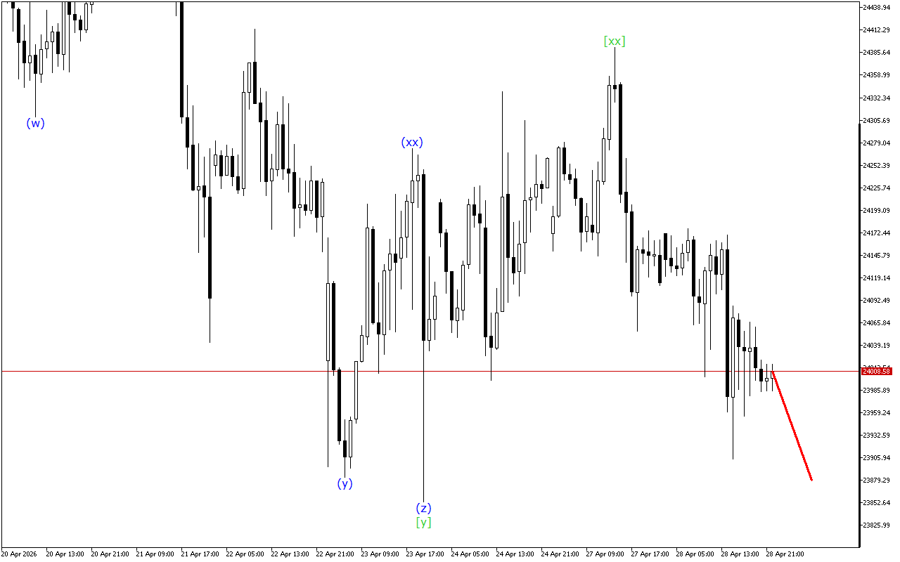 Төменгі уақыт шеңберінің толқындары үшеулік үштікті құрайды. Қазіргі уақытта баға (z) толқынында. Бұл толқын аяқталғанда, бағаның неғұрлым бағытталған қозғалысы күтіледі.