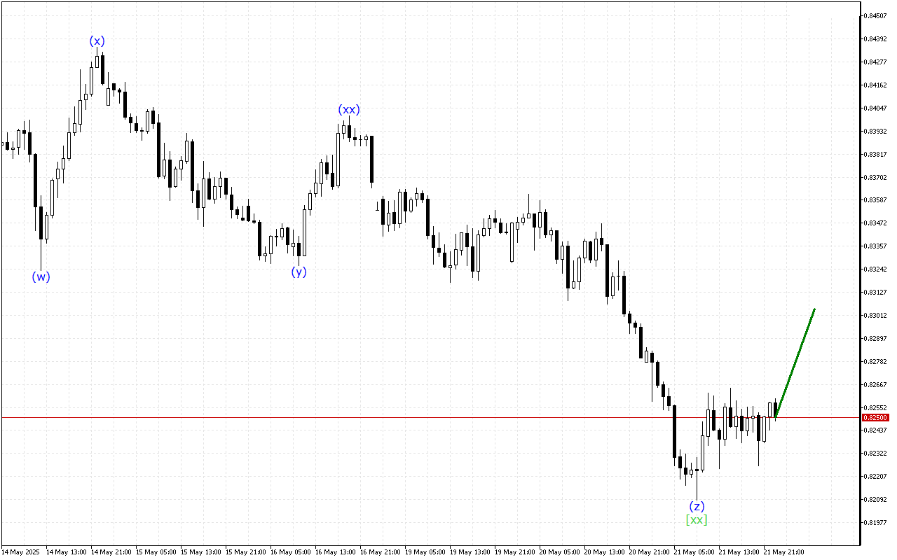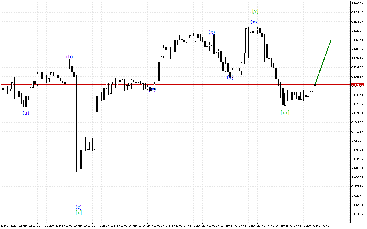 Төменгі дәрежелі толқындық құрылымда үшеулік үштіктің пайда болуы байқалады. Қазір баға (z) толқынында осы формацияны аяқтайтын. Бұл толқын жақын арада аяқталады деп күтілуде. Осыдан кейін ағымдағы баға үрдісі өзгеруі мүмкін.