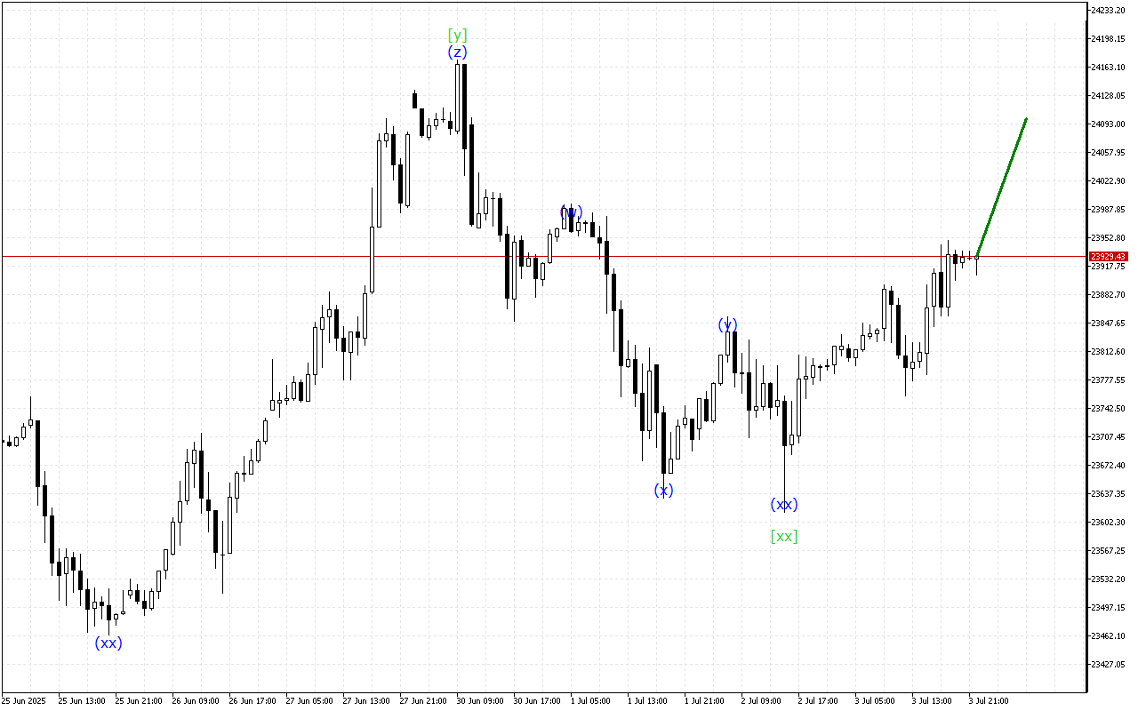 Жоғары дәрежелі толқындық құрылымы түзету аймағы болып табылады. Қазір біз соңғы [y] толқынның қалыптасуы көрінеді. Ол аяқталғаннан кейін нарықта қозғалыстың одан әрі бағытын анықтауға болады немесе бес толқынды құрылымның дамуын көреміз.