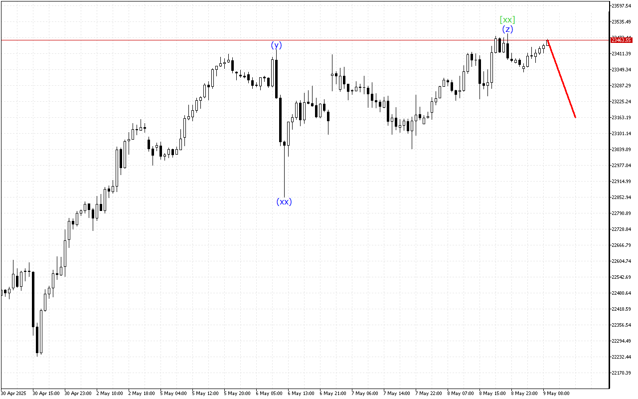 Төменгі уақыт шеңберінің толқындары үшеулік үштікті құрайды. Қазіргі уақытта баға (z) толқынында. Бұл толқын аяқталғанда, бағаның неғұрлым бағытталған қозғалысы күтіледі.