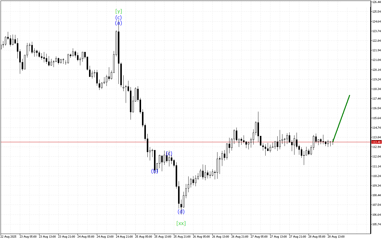 USDCHF орташа мерзімді қозғалыс векторы толқын құрылымының қалыптасуын көрсетеді. Енді [xx] толқынының қалыптасуы аяқталды және [z] толқынының ішінде жоғары қарай қозғалыстың басталуы күтілуде.