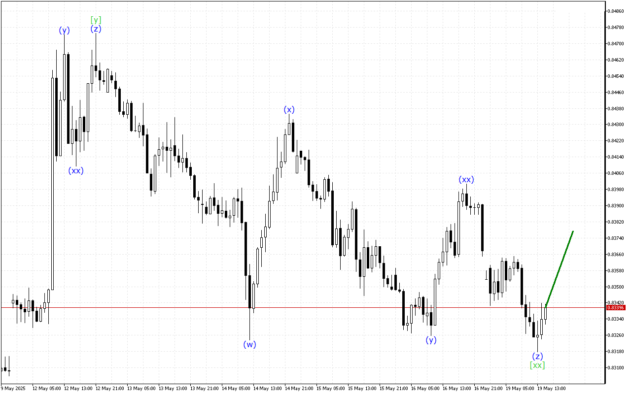 Төменгі дәрежелі толқындық құрылымда үшеулік үштіктің пайда болуы байқалады. Қазір баға (z) толқынында осы формацияны аяқтайтын. Бұл толқын жақын арада аяқталады деп күтілуде. Осыдан кейін ағымдағы баға үрдісі өзгеруі мүмкін.