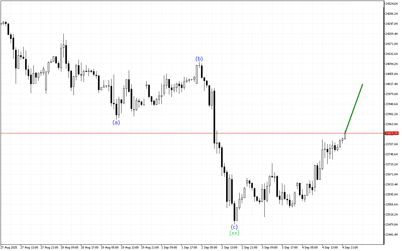 Төменгі дәрежелі толқындық құрылымда үшеулік үштіктің пайда болуы байқалады. Қазір баға (z) толқынында осы формацияны аяқтайтын. Бұл толқын жақын арада аяқталады деп күтілуде. Осыдан кейін ағымдағы баға үрдісі өзгеруі мүмкін.