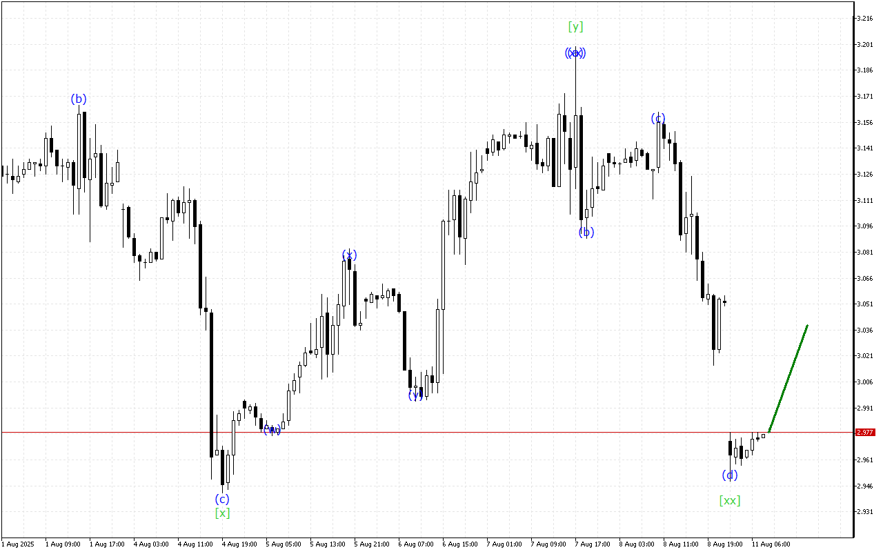 Жогорураак убакыт алкагында үч эселенген үч толкун түзүмүн өнүктүрүү бар. Учурда [хх] толкуну түзүлдү. Андан кийин баа төмөндөө кыймылын улантууга тийиш.