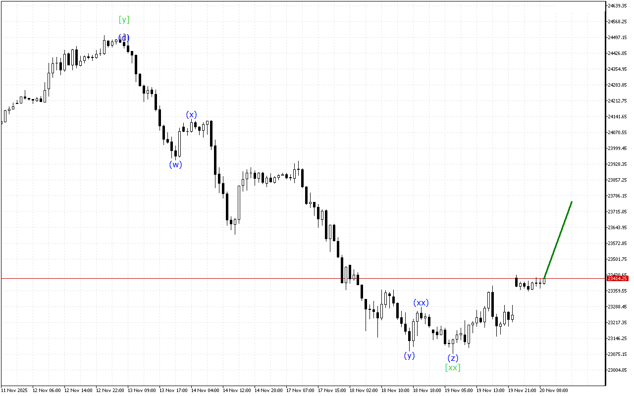 Жогорураак убакыт алкагында үч эселенген үч толкун түзүмүн өнүктүрүү бар. Учурда [хх] толкуну түзүлдү. Андан кийин баа төмөндөө кыймылын улантууга тийиш.