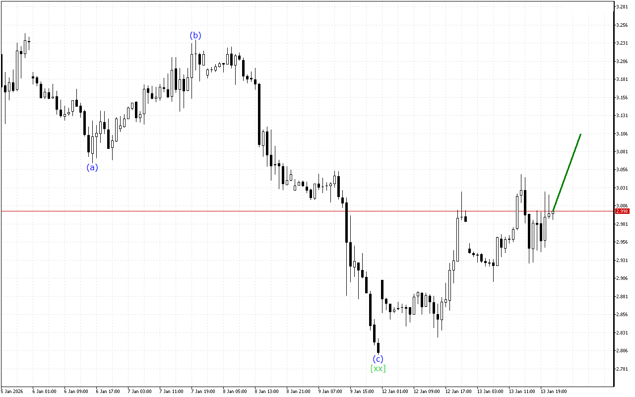 DAX 40 продолжает движение в рамках волновой структуры “Тройная тройка”. Сейчас на графике, судя по всему, завершилось формирование волны [хх] и мы можем ожидать развития восходящего движения с волной [z].