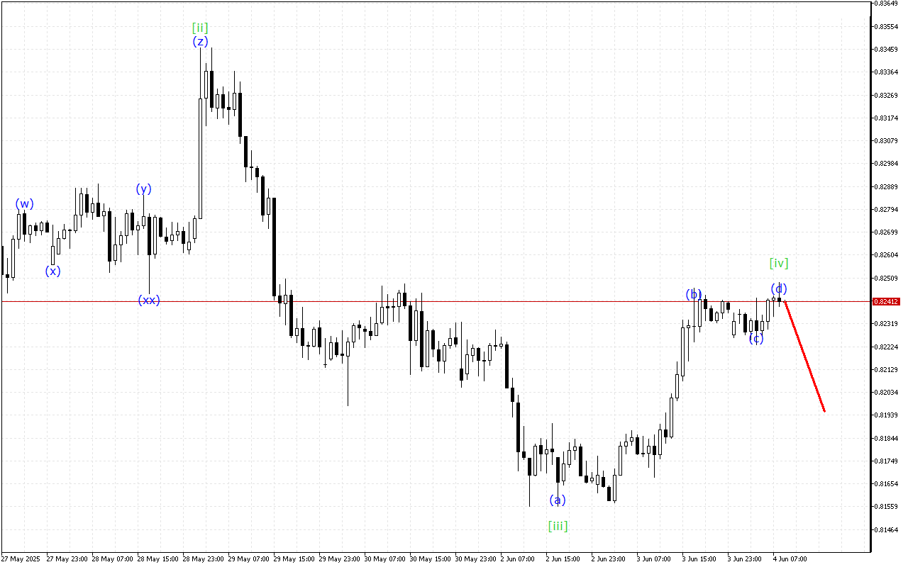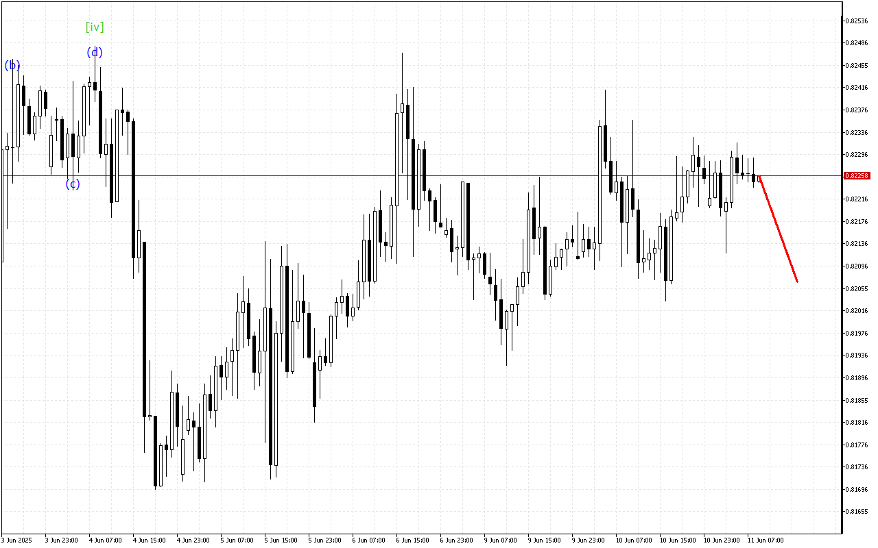 В контексте волновой структуры более низкого уровня отчетливо видим формирование зигзага ABC. Как только волна (c) будет полностью сформирована мы можем увидеть возобновление трендового движения.