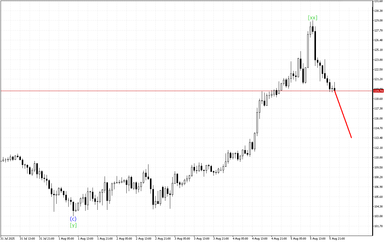 Среднесрочное движение указывает на развитие волновой структуры тройной тройки. В настоящее время сформирована волна [xx], после которой цена должна возобновить движение вниз.