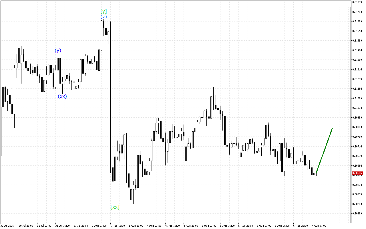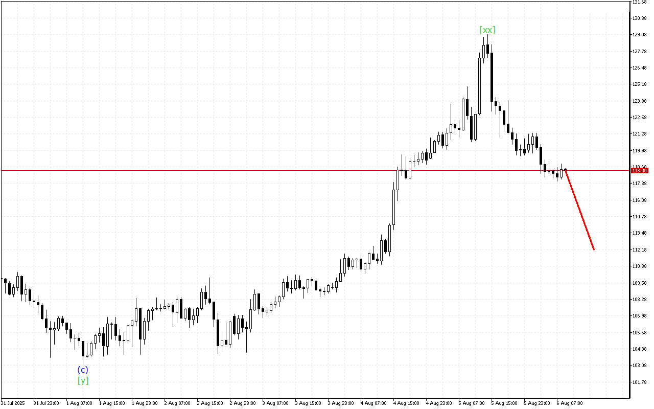 Среднесрочное движение указывает на развитие волновой структуры тройной тройки. В настоящее время сформирована волна [xx], после которой цена должна возобновить движение вниз.