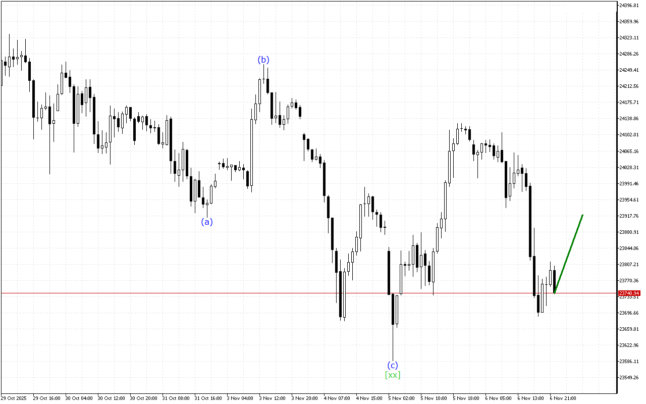 Текущая динамика движения указывает на формирование тройной тройки. На данный момент сформирована волна [xx], после чего ожидается начало развитие нисходящей волны [z].