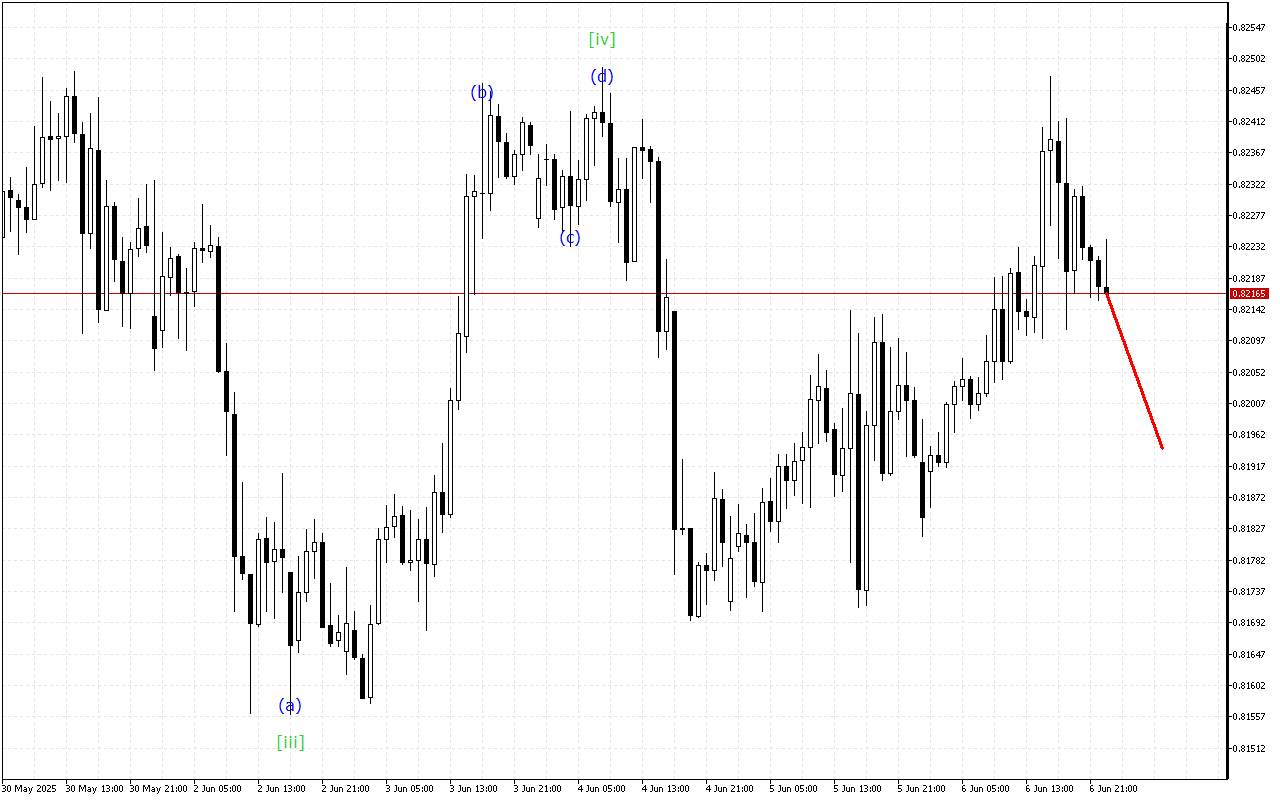 Волны более низкого порядка указывают на формирование нисходящего зигзага ABC. Вероятнее всего, волна (c) уже завершена, поэтому мы можем ожидать формирования новой волновой структуры.