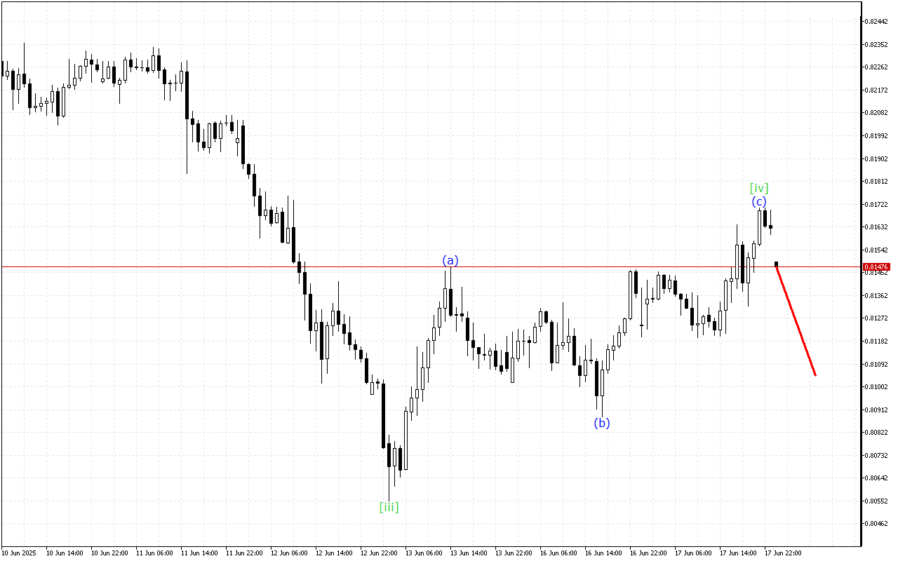 Среднесрочное движение указывает на развитие волновой структуры тройной тройки. В настоящее время сформирована волна [xx], после которой цена должна возобновить движение вниз.