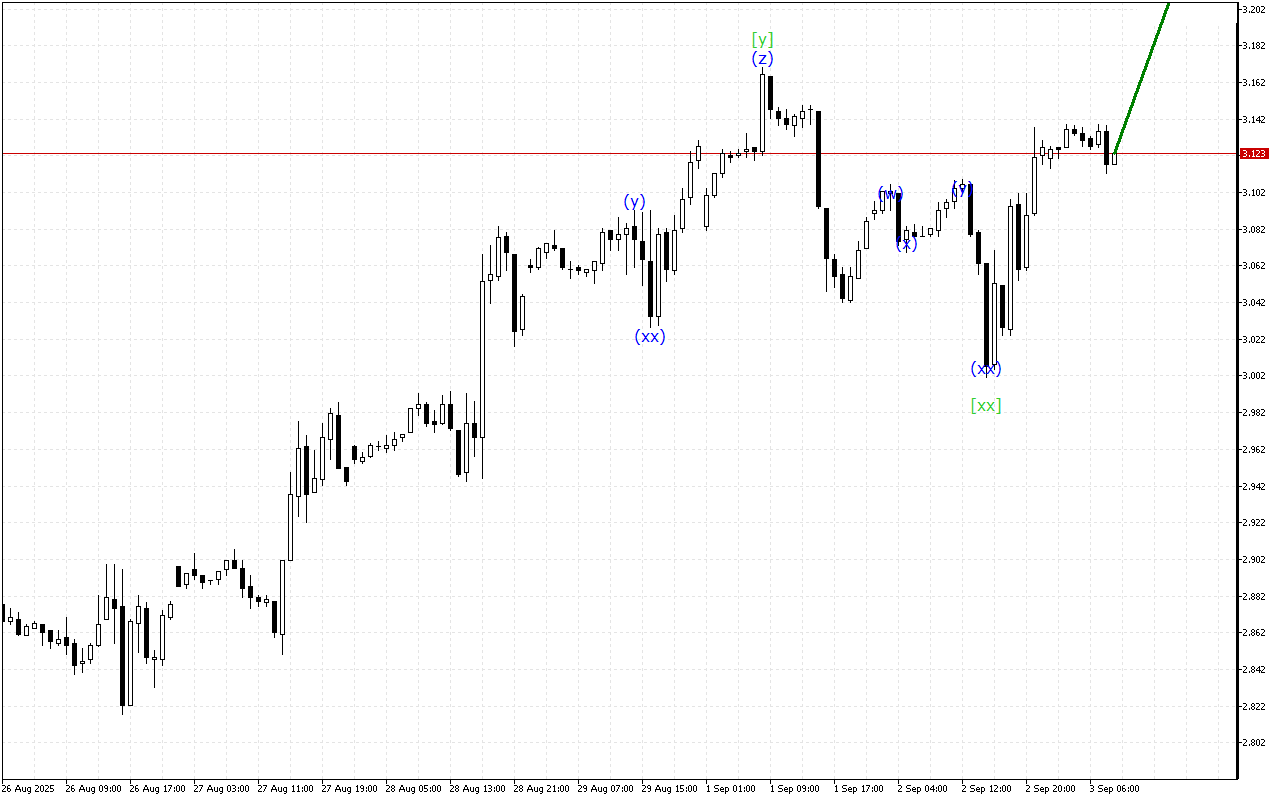 Среднесрочный вектор движения Natural Gas указывает на формирование волновой структуры Тройная тройка. Сейчас завершается формирование волны [хх] и ожидается начало восходящего движения в рамках волны [z].